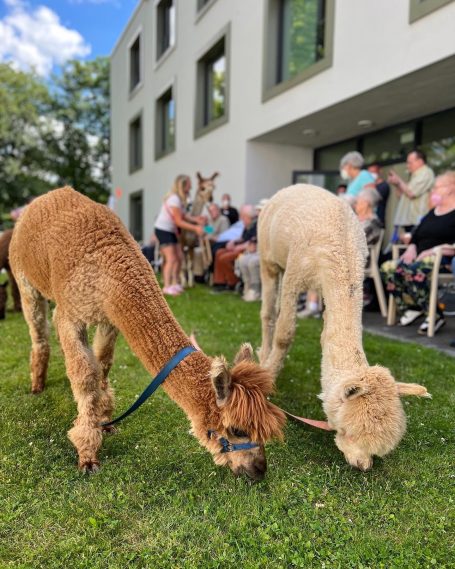 Wir waren mit unseren Lamas und Alpakas zu Gast in den Seniorenhausgemeinschaften St. Josef & Aegidius in Blankenheim. Die Tiere wurden von den Bewohnern und Mitarbeitern voller Vorfreude erwartet. Es wurde gestreichelt, gefüttert und ganz besonders viel gelächelt.