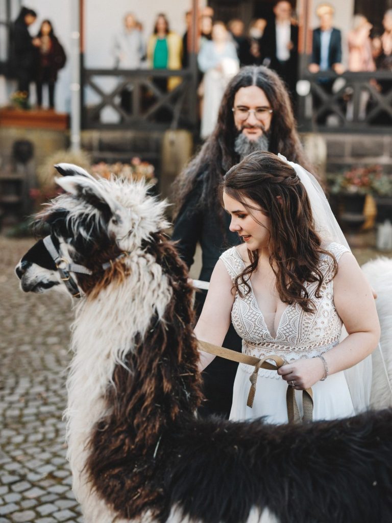 Buddy, Teddy und Samson waren die besondere Überraschung für die Braut und es entstanden nicht nur tolle Bilder, sondern mittlerweile eine besondere Freundschaft zu den drei Lamas.