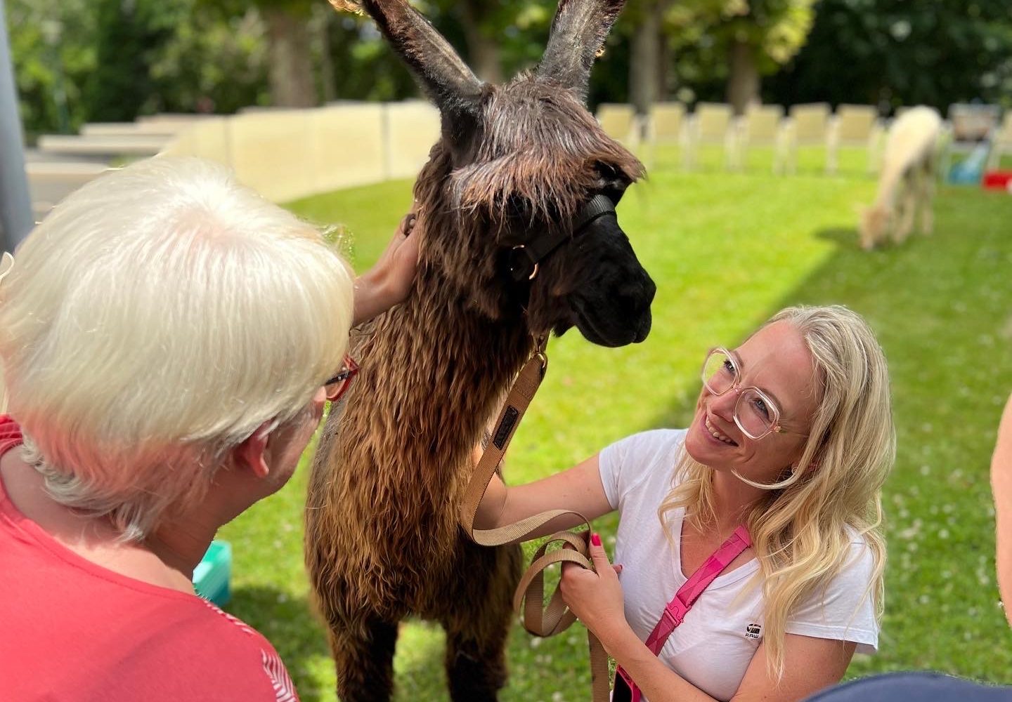 Lamas und Alpakas sind durch ihre ruhige, freundlich distanzierte, aber dennoch sehr neugierige Art besonders geeignet für die Tiergestützte Intervention.